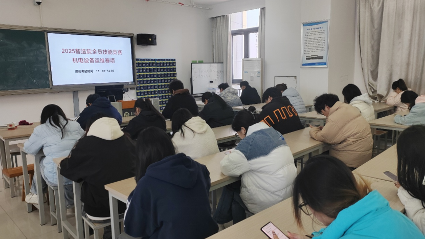 2025年11月22日下午,智能制造学院“机电设备运维”全员技能竞赛理论选拔赛,在智造院301教室正式开赛。本次理论选拔采用线上形式,来自分院智能控制与工业机器人专业的50名选手,在时长一小时的角逐后,共有20名同学脱颖而出,成功晋级,获得进入实践技能考核环节的资格,并在智造院501参加实践技能考核。