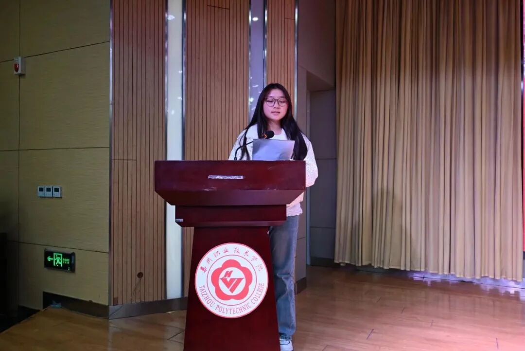 学生代表仇莹分享了在学院学习、实践的感受,倡议大家夯实基础、找准方向,在实训与竞赛中练就本领,把握成长机遇。