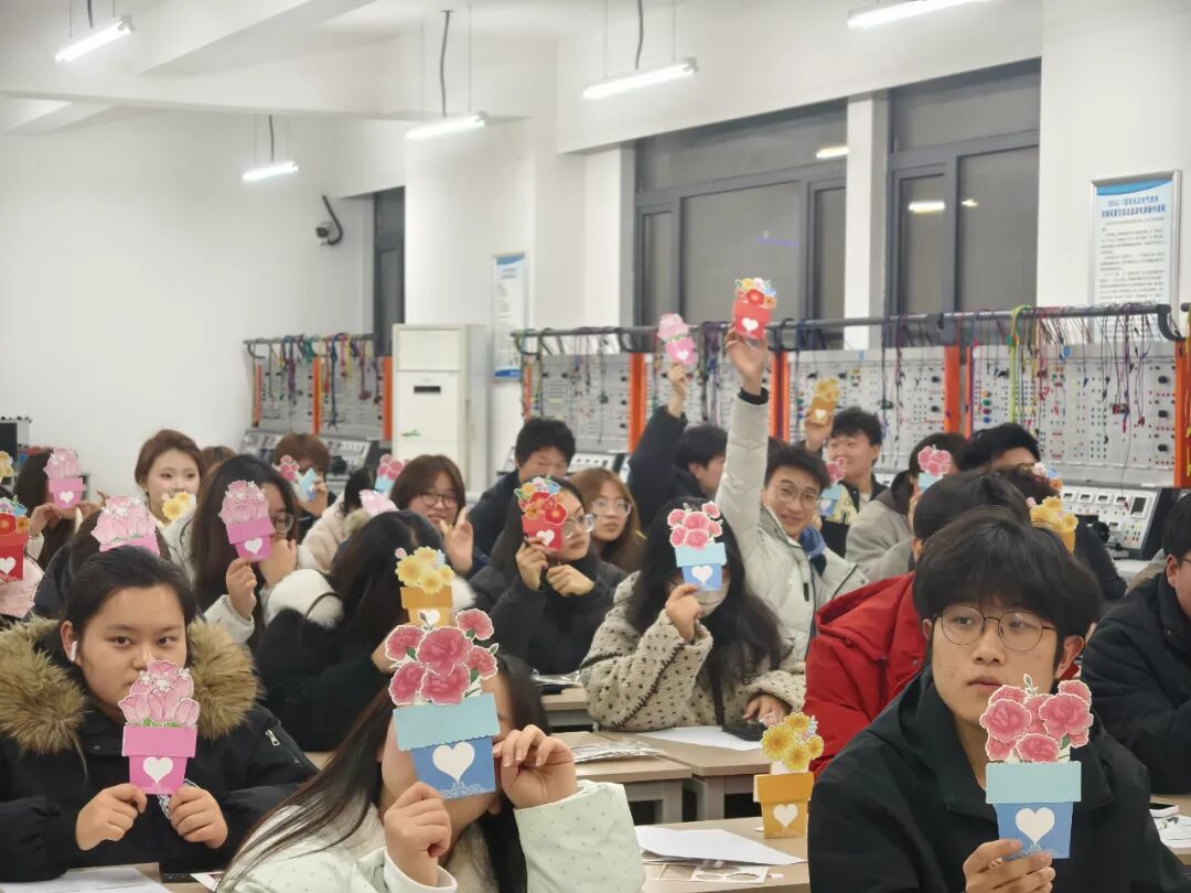 活动最后,曹宇轩为同学们发放DIY花盆贺卡,伴随音乐《我好喜欢我自己》,大家亲手制作贺卡、寄托期许,随后高举花盆齐声喊出“爱你,老己”并合影留念。